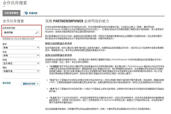 輸入合作伙伴名稱的關(guān)鍵字查詢,所有信息一目了然(我們這里以“南京網(wǎng)聯(lián)”為例)
